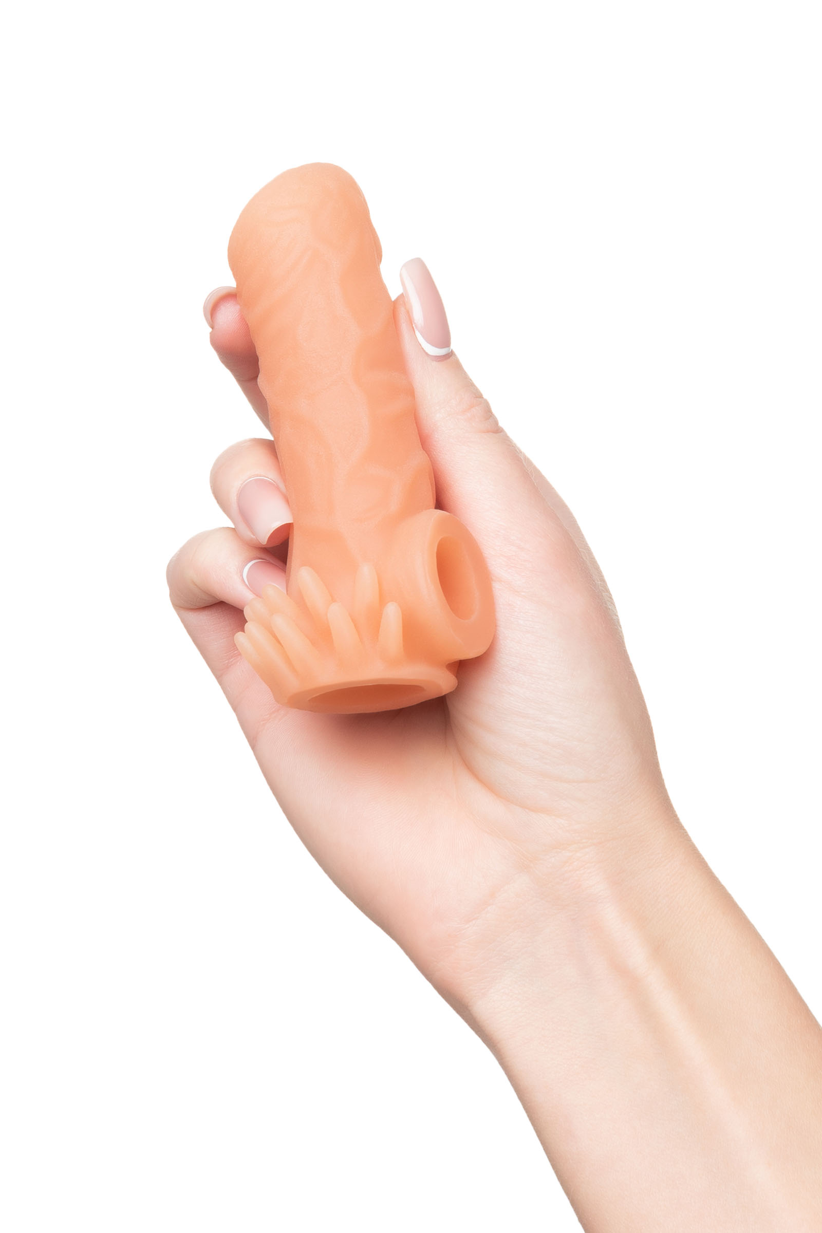 Открытая насадка с фантазийным рельефом от KOKOS предназначена воплотить фантазии о взаимном удовольствии. Реалистичная насадка на пенис - необходимый элемент для вашей сексуальной игры, если вы хотите максимально удовлетворить свою партнершу и сделать секс незабываемым. Откройте новые возможности: Увеличенный объем полового члена на 30% добавляет мужчине уверенности в своих сексуальных возможностях. Дополнительная стимуляция партнерши с помощью рельефа для яркого и насыщенного оргазма. Увеличение продолжительности полового акта у мужчины - задержка эякуляции, и наращивание темпа приближения оргазма у женщины. Насадка имеет форму “рукав”, плотно прилегает к пенису, создавая дополнительную толщину и оставляя головку открытой. Это позволяет сохранить чувствительность головки, задерживая эякуляцию. В основании есть отверстие для мошонки, с помощью которого вы надежно зафиксируете насадку на пенисе, не ограничиваясь в активных движениях. Насадка, за счет плотного облегания мошонки и головки, усиливает эрекцию. Классический рельеф в виде многочисленных выпуклых вен по всему стволу насадки стимулирует зону G, вход во влагалище и настойчиво ласкает чувствительные зоны. Два ряда мягких усиков в основании насадки дополнительно стимулируют клитор и половые губы и делают ощущения оргазма многократно ярче. Дополнительный объем дарит то самое чувство наполненности, увеличивая поток возбуждения. Мужчина тоже будет ощущать стимуляцию за счет давления стенок влагалища на пенис. Супер эластичный материал быстро принимает температуру тела, отлично тянется, сохраняя при этом прочность. Нежное и мягкое покрытие такое же приятное на ощупь, как и человеческая кожа. Насадка сделана из высококачественного безвредного для человеческого организма материала, который прошел необходимые тестирования и сертификацию.Рекомендуем использовать до и после применения - дезинфицирующее средство для игрушки, чтобы обеспечить длительное скольжение и комфорт интимных отношений, рекомендуем использовать смазку на водной основе. Для бережного хранения материала пересыпать пудрой для игрушек. Хранить при температуре не выше 35 градусов, избегать попадания прямых солнечных лучей.