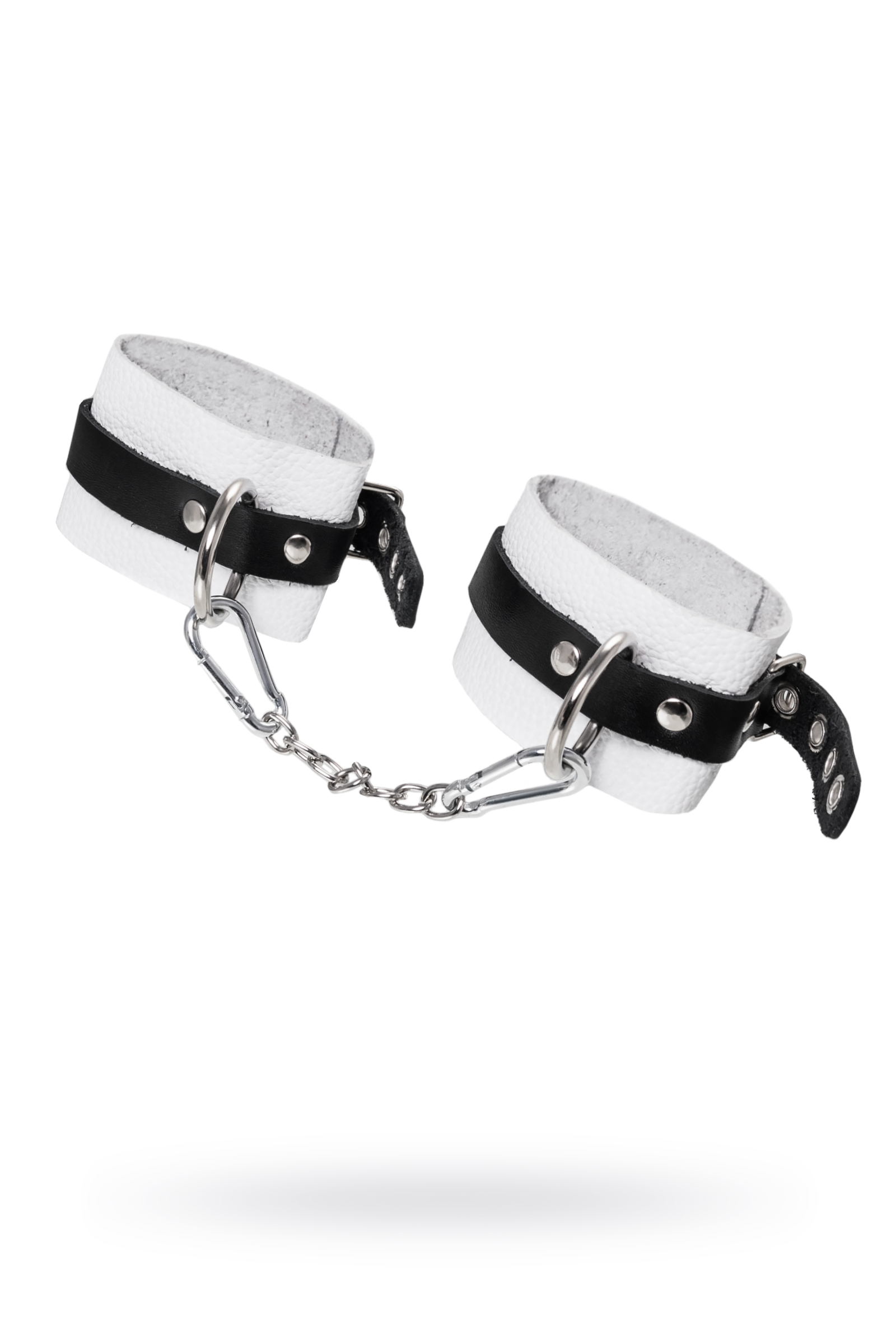 Мягкие оковы с жёсткими ремешками от Pecado помогут обездвижить партнера во время сексуальных прелюдий или жестких БДСМ-играх. Наручники изготовлены полностью из белой, натуральной кожи. Ремешки выполнены из чёрной жёсткой кожи, украшены люверсами. Выделка материала произведена вручную. Ремешки и широкая манжета хорошо держат форму: не тянутся и не мнутся. Качественная металлическая фурнитура добавляет лоска изделию, а аромат натуральной кожи повышает градус возбуждения. Благодаря широкому запасу регулировок, можно подобрать необходимый обхват. Аксессуар удобно застегивать и легко расстегивать. При правильном использовании не оставляет следов на теле и не доставляет дискомфорта. Манжеты оков соединяется между собой помощью двух карабинов и съемной стальной цепочки. Подходит и для женских, и для мужских ног.Ручная работа.Износостойкий, тактильно приятный материал. Надежная высококачественная фурнитура.Универсальный размер. Длина сцепки - 24см