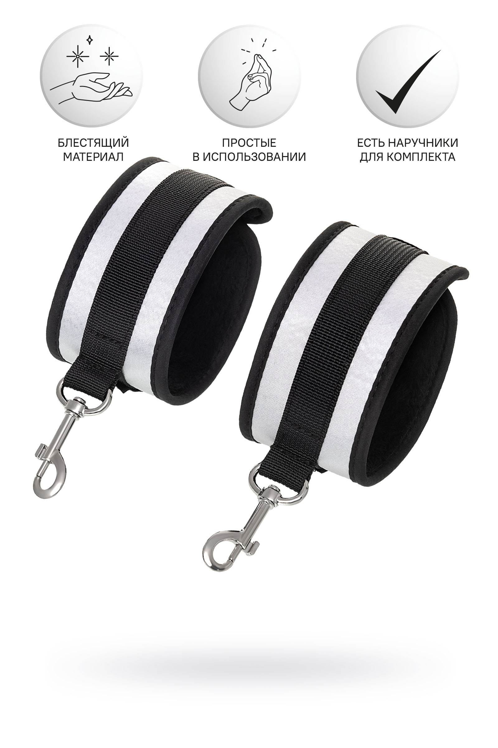 Оковы Ано́нимо — классический предмет для игры в подчинение, обязательный для начинающих и опытных поклонников БДСМ. Блестящий во всех смыслах аксессуар для ограничения свободы – сатиновый материал поблескивает, когда на него падает свет. Необычное сочетание серебристого и черного, совсем нехарактерное для классического исполнения аксессуаров в стиле БДСМ, придает изюминку и новизну. Подчиненный с таким аксессуаром выглядит неотразимым. Застежка велкро позволяет зафиксировать ноги любого размера. Между собой поножи скрепляются карабинами, практически не оставляя свободы действий. Никакого послабления, только полное подчинение своему Доминанту. Используйте дополнительно цепочку для расширенных возможностей фиксации положения ног. Начните игру в подчинение с этим аксессуаром, и вы поймете, как развивать свою чувственность с помощью ограничения свободы одного из партнеров. Дополните комплект аксессуарами — ошейником, кляпом, наручниками и продемонстрируйте что значит грубое обращение и полный контроль над свободой. Материал: полиэстер, полипропилен Цвет: черно-серебристый Длина: 28,5 см Ширина: 5,5 см Длина сцепки: 8 см